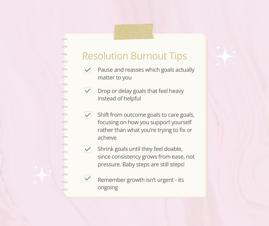 Resolution burnout can happen when the initial excitement of βNew Year, New Meβ fades β and youβre left feeling overwhelmed or unmotivated instead of energized. Many people set ambitious goals only to see them fizzle out quickly and by the end of January, roughly 40β45% of people have stopped working toward their original goals.